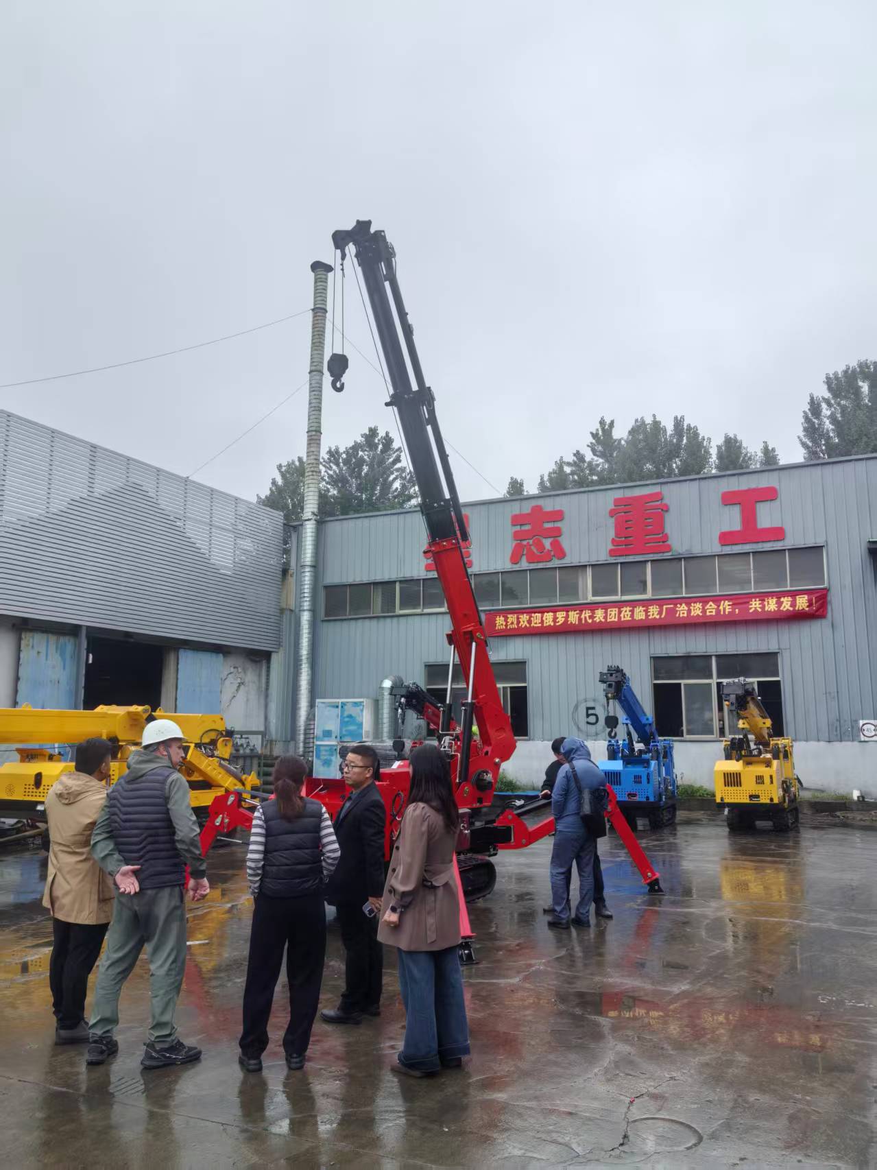 (俄羅斯客戶與星志重工技術(shù)人員探討蜘蛛吊車產(chǎn)品細節(jié))